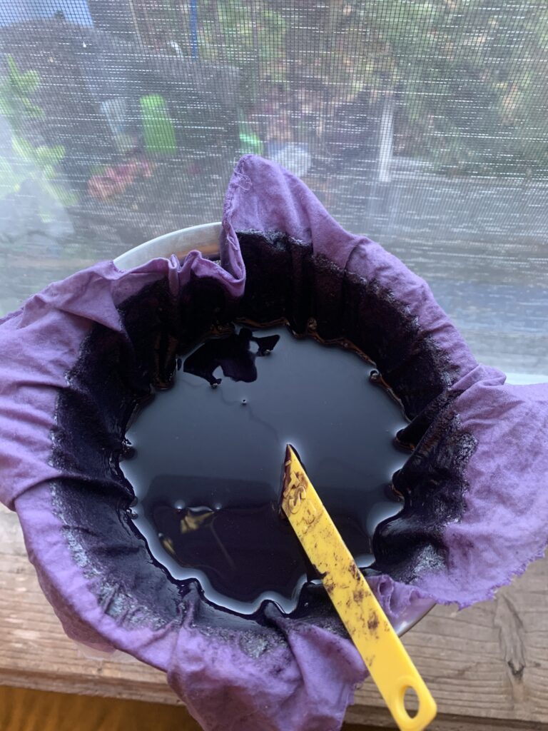 These works were created with pigments and dyes grown in and/or collected from my immediate environment. I tend to plants in gardens, gather materials found in my neighborhood and further afield, and pull materials from the waste-stream. Materials are then refined and reformed into inks and paints. These processes create a point of contact for me explore my sense of belonging in and relationship to the 'more than human’ world and with humans throughout time.